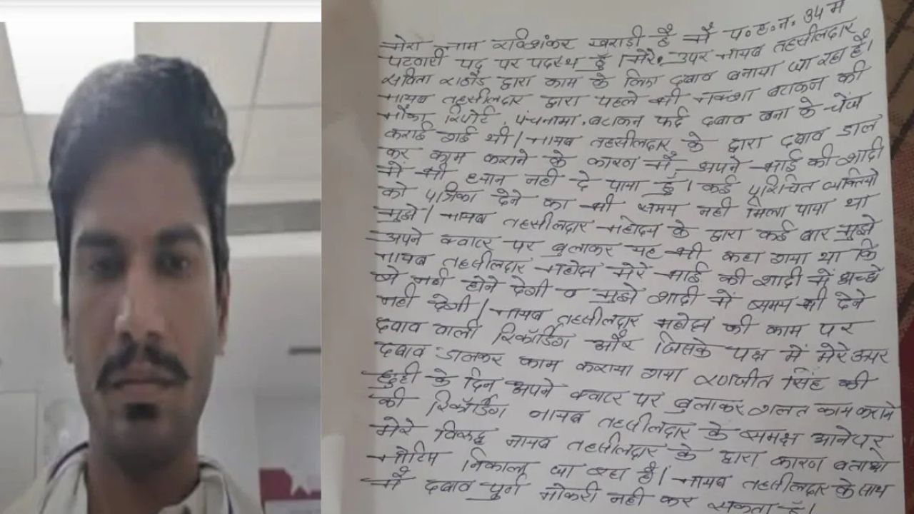 इस मामले ने तब और गंभीर रूप ले लिया जब मृतक के परिजनों ने नायब तहसीलदार पर मानसिक प्रताड़ना के आरोप लगाए। मृतक की मां ने कहा कि उनके बेटे पर लगातार काम का दबाव बनाया जा रहा था। उनका आरोप है कि एक किसान का काम कराने के लिए उस पर दबाव डाला जा रहा था और जब वह काम समय पर पूरा नहीं कर पाया तो उसे मानसिक रूप से परेशान किया गया। परिजनों का कहना है कि इसी दबाव के चलते रविशंकर ने यह कदम उठाया। इस आरोप के सामने आने के बाद प्रशासनिक अधिकारियों की भूमिका पर भी सवाल खड़े हो रहे हैं।