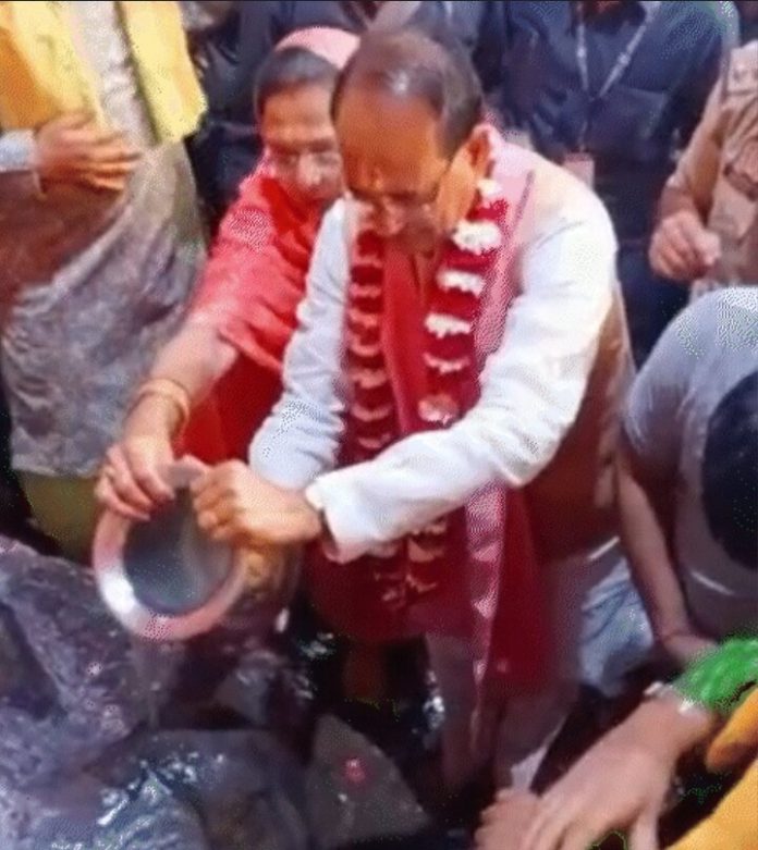 सीएम शिवराज पत्नी के साथ पैदल परिक्रमा कर गोवर्धन पर्वत पर पहुंचे। यहां उन्होंने दुग्धाभिषेक किया और पूजा-अर्चना की। उन्होंने मथुरा और वृंदावन के कई मंदिरों में पहुंचकर भगवान के दर्शन किए।मुख्यमंत्री चौहान और उनकी पत्नी ने काफी देर तक पूजा-अर्चना की। उन्होंने लिखा कि ब्रजभूमि मथुरा में गोवर्धन पर्वत की परिक्रमा और विधि-विधान से पूजा-अर्चना कर लोक मंगल की कामना की। भक्त वात्सल्य भगवान की कृपा सदा हम सब पर बनी रहे।