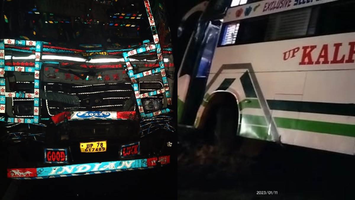 गुना। चांचौड़ा थानाक्षेत्र के बरखेड़ा गांव के समीप नेशनल हाइवे-46 पर बुधवार तड़के करीब चार बजे एक भीषण सड़क हादसा हो गया। गुजरात के अहमदाबाद से कानपुर, यूपी जा रही एक बस को ट्रक ने पीछे से टक्कर मार दी। इस हादसे में बस कंडक्टर समेत दो लोगों की मौत हो गई, वहीं 11 यात्री घायल हो गए। घायलों को जिला अस्पताल में भर्ती कराया गया है, जहां उनका उपचार किया जा रहा है। बताया जाता है कि बस का टायर पंचर हो गया था। बस स्टाफ टायर बदलने में जुटा था, तभी पीछे से आकर ट्रक टकरा गया।